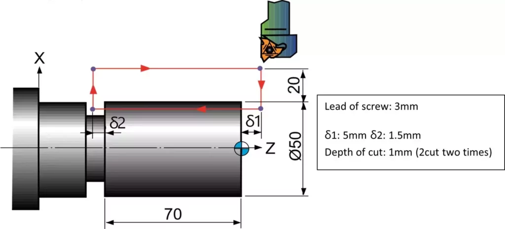 F = Pitch × Spindle Speed. - Spindle Speed (S): The spindle speed is critical for maintaining the correct thread pitch. It is usually calculated based on the desired cutting speed and tool diameter.